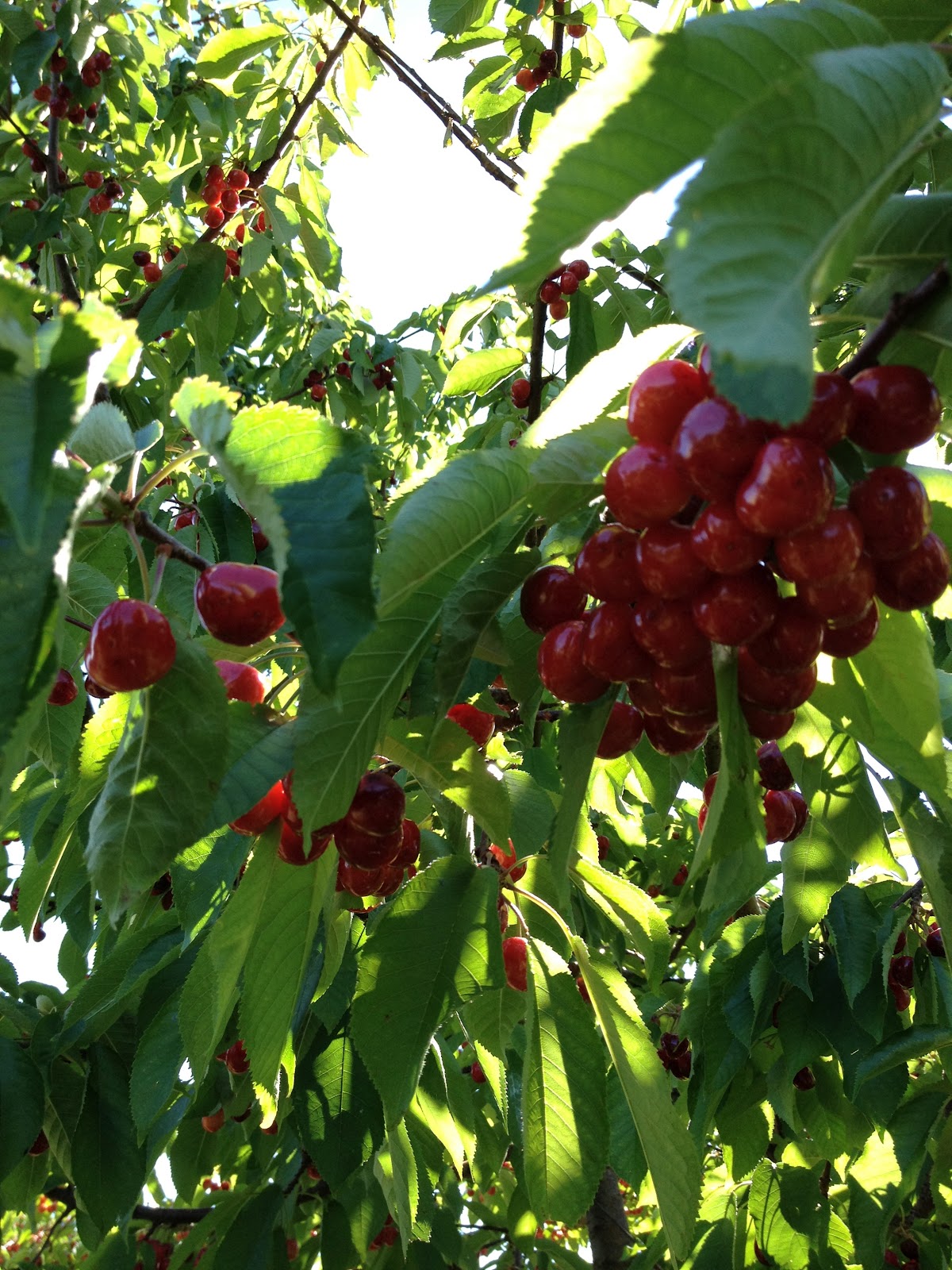The Cherries were pulling the branches down so far that some were touching the ground. Easy picking for a 5 year old.